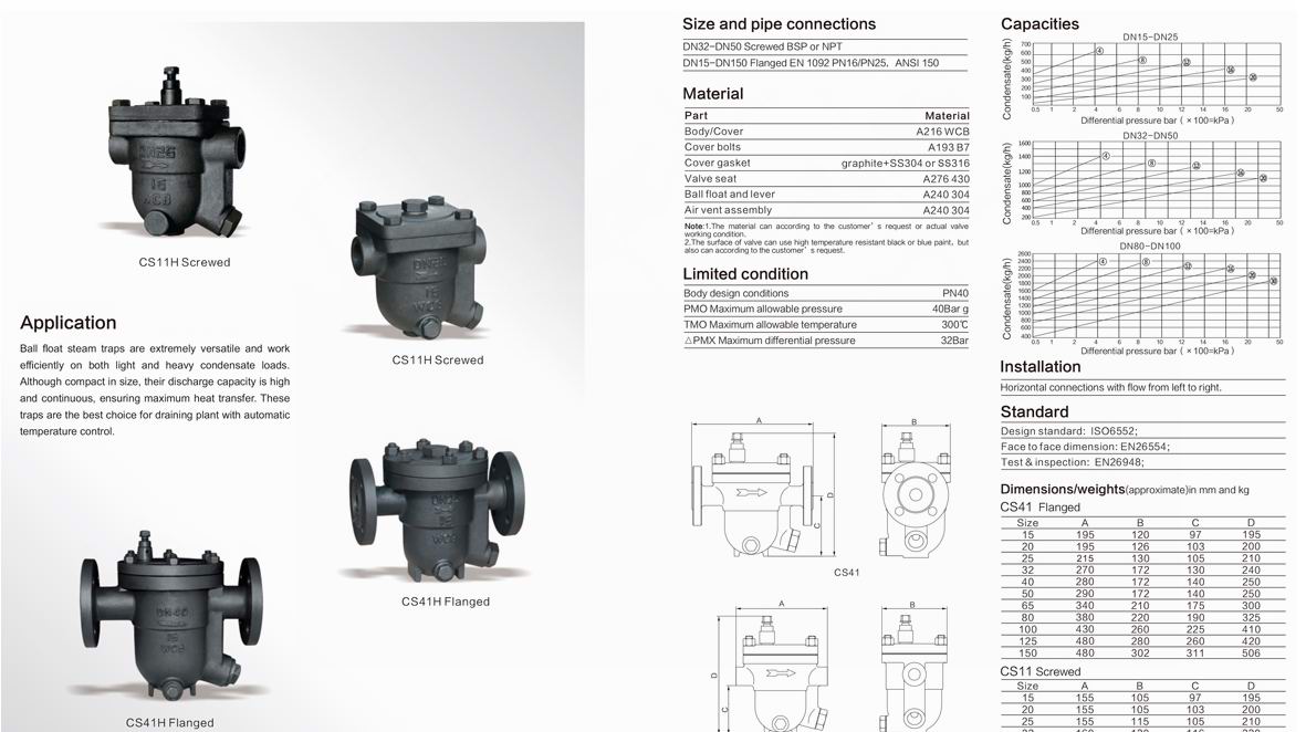 5、敞口形的浮子抗水擊,吊桶上設有溢出排氣孔,可有效防止蒸汽汽鎖,空氣氣堵現象。(非凝結性的高溫空氣也可排除)