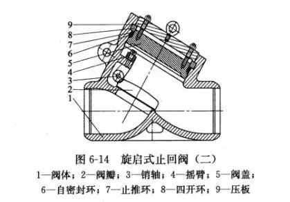 01單瓣式(圖6-11)只有一個閥座通道和一個閥瓣,適用于中等口徑旋啟式止回閥。